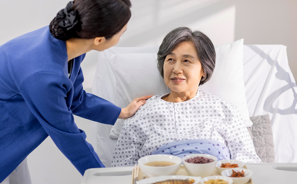 전담 영양사가 환자 개개인의 연령, 질환(당뇨, 고혈압), 신체 상태(연하곤란 등)를 고려한 치료식과 특별 식단을 꼼꼼하게 설계합니다. 매일 신선한 제철 식재료를 사용하여 맛과 영양 균형을 모두 충족시키며, 식사를 통한 회복 촉진을 돕습니다.